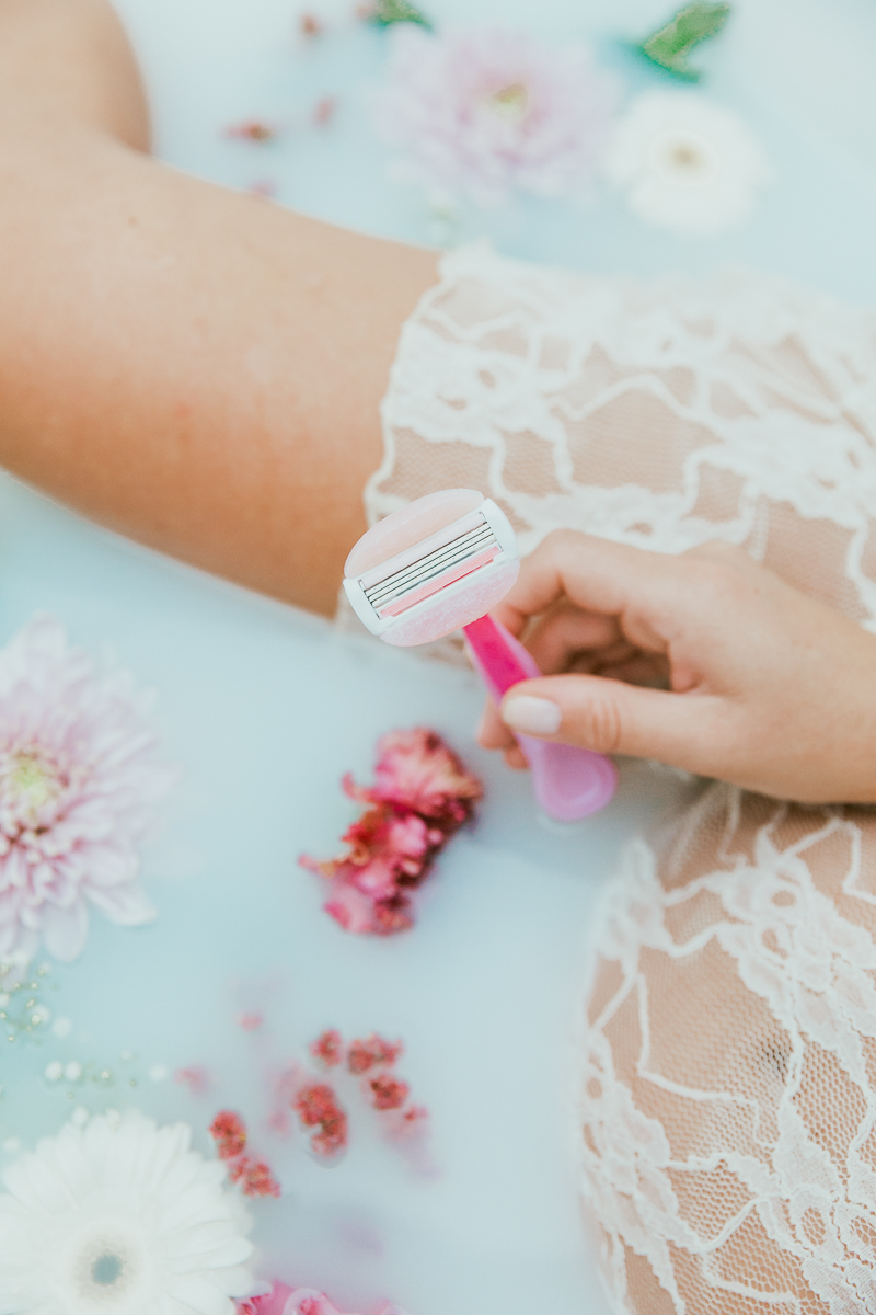 Damit ich mich aber natürlich auch nach dem Bad wieder so richtig wohl und entspannt fühle, gehört für mich auch die entsprechende Pflege dazu. Vom pflegenden Badezusatz, über Gesichts- und Haarmasken bis zur Rasur der Beine und Achseln. Schließlich will man auch im letzten Drittel der Schwangerschaft nicht wie Yeti durch die Welt stiefeln. 😉